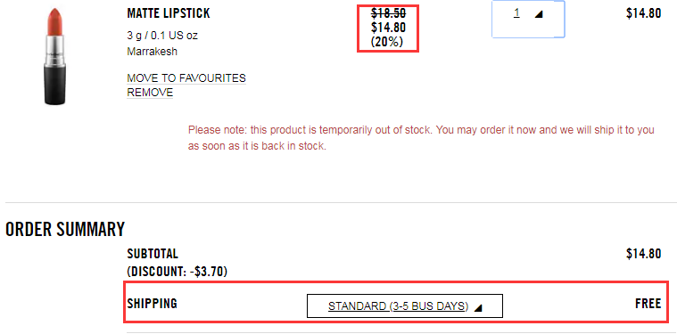 MAC 魅可 美国官网 现有 *头口红等专业彩妆 全场8折+限时*,无需折扣码,加入购物车自动减价,有效期至北京时间 2018年06月09日12点,任意订单美国境内免运费。立即购买>>