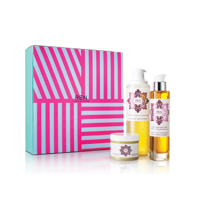 - REN是英国的著名有机护肤品牌,注重天然有效和环保。主要使用欧洲公认超纯净的阿尔卑斯山泉水,以有机精油与植物油为基底打造的护肤品牌,具有天然有效的护肤效果。它家的摩洛哥玫瑰身体系列一直是非常受欢迎的一个系列,这个套装包含:沐浴露200ml+身体护理油100ml+身体磨砂膏75ml,非常划算的一套。