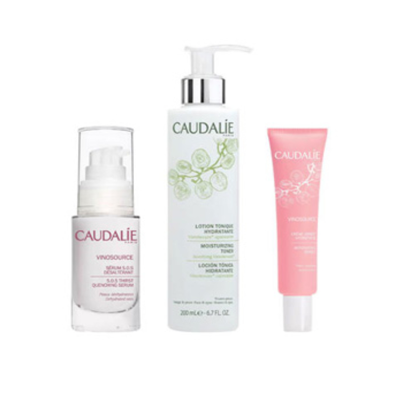 - CAUDALIE 欧缇丽葡萄源强效补水保湿三件套(舒缓精华30ml+冰淇淋霜40ml+爽肤水200ml),都是欧缇丽家的热门单品。冰淇淋面霜质地很特别,如同冰淇淋一样的质地,高效持久保湿。sos舒缓精华含红酒酵母和有机葡萄水,能有效对抗干燥,帮助肌肤调节储备的水分并降低肌肤敏感度,高效补水保湿;