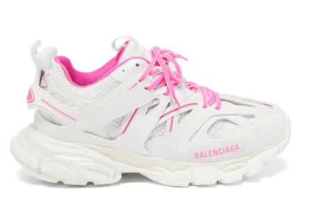 - Balenciaga Track 巴黎世家老爹鞋,鞋身由网眼、皮革、反光材质等多种材质彼此叠加拼接。在浓郁的户外风中插手当下最风行的元素。整体造型以越野跑鞋为灵感。搭载上一样极具条理的特大鞋底。鞋头印有 Balenciaga Logo。