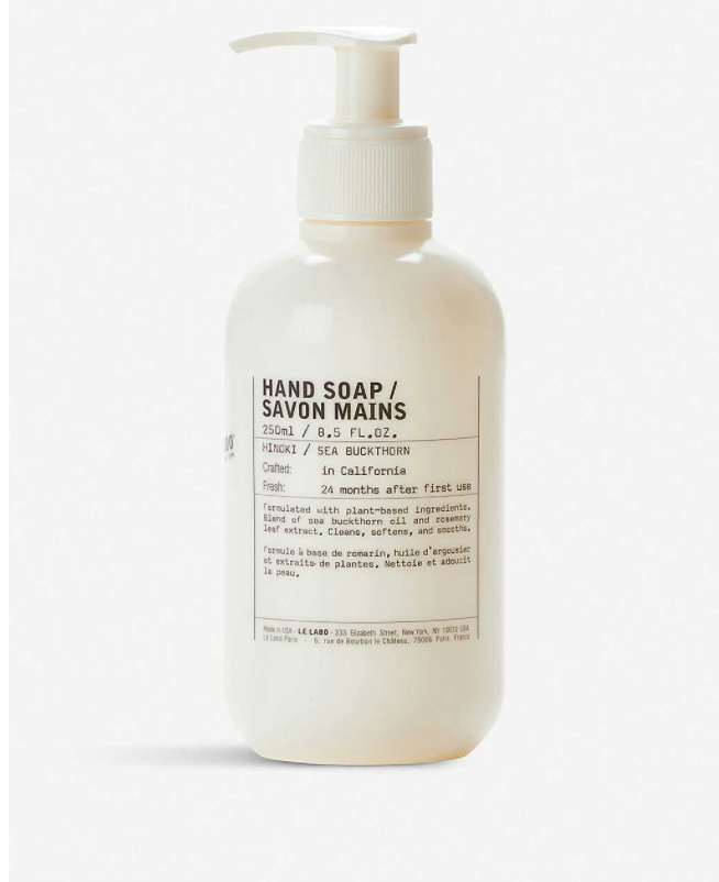 - LE LABO 老日用品牌子了,在关爱人类生活方面它属实有一手,他们家什么都入一手,这款新品的洗手液主要有沙棘果为主要植物配方,一打即出泡沫,温和湿润保证手部肌肤免受细菌跟环境影响,而且气味带着浓郁的果香,简直可以当简易香水用!!喜欢和乐于高端品牌的日用品的小伙伴可以入一手哦~