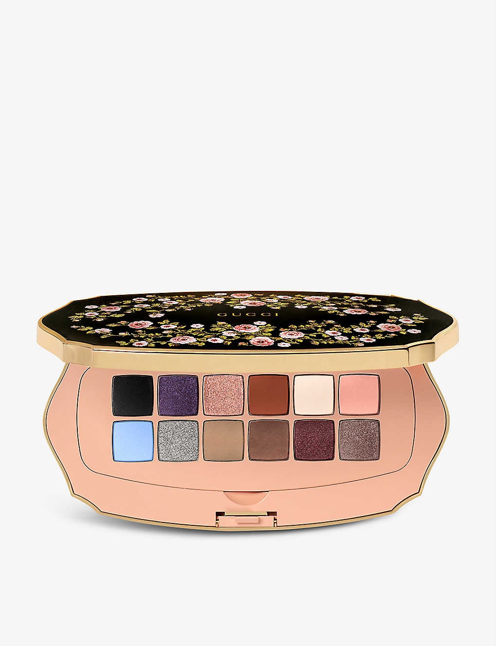 - Gucci 带着新品限量眼影盘来袭!selfridges 直达页面!此盘一共12个颜色,有多种画法!正如眼影盘名字一样,外壳封面也像Gucci被围绕在万花丛中夺目,喜欢Gucci家的uu们可以入啦!