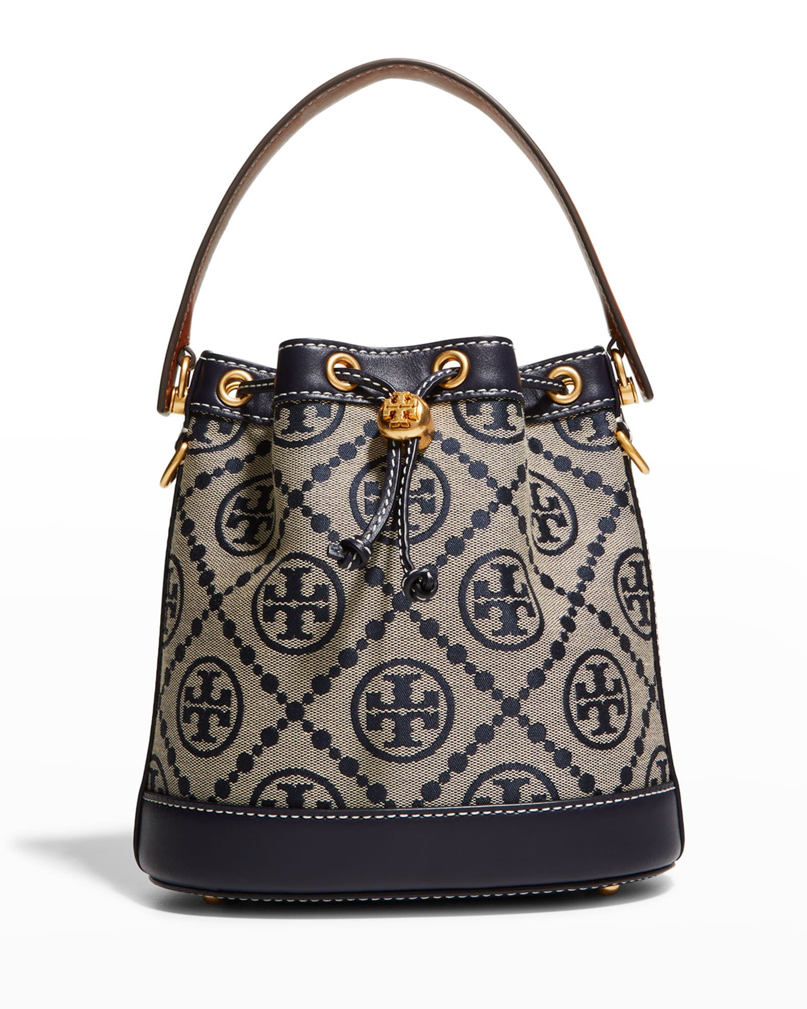 - 这款水桶包采用深蓝配色,日常穿搭都不会突兀,十分的百搭,水桶包型充满时尚感,老花纹路系列是tory burch畅销的系列,现在这款参与满赠礼卡的活动,不要太划算~