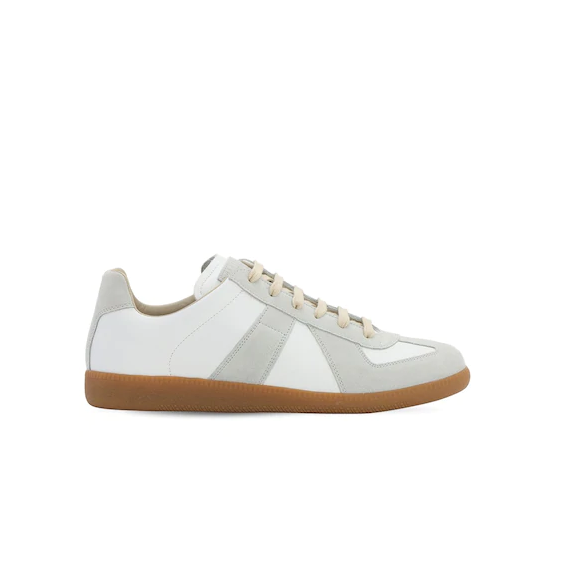 - 在鞋子方面,MAISON MARGIELA 除了有大名鼎鼎的分趾鞋外,他家的这款名为 Replica 的复古运动鞋也非常热销,舒适、百搭、耐穿让德训鞋成为了时尚博主们推崇的单品之一。灰白的经典配色最复古高级,冲啊~