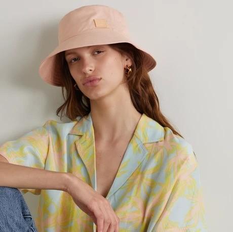 - Acne Studios 这款渔夫帽采用纯棉斜纹布制成,设有倾斜的宽幅帽檐,标志性的表情贴花低调道出品牌身份。不妨参考《PORTER》线上杂志的建议,用它为夏日连衣裙增添几分活泼感,或用其配搭大廓形精裁装,放大整体的时髦度。