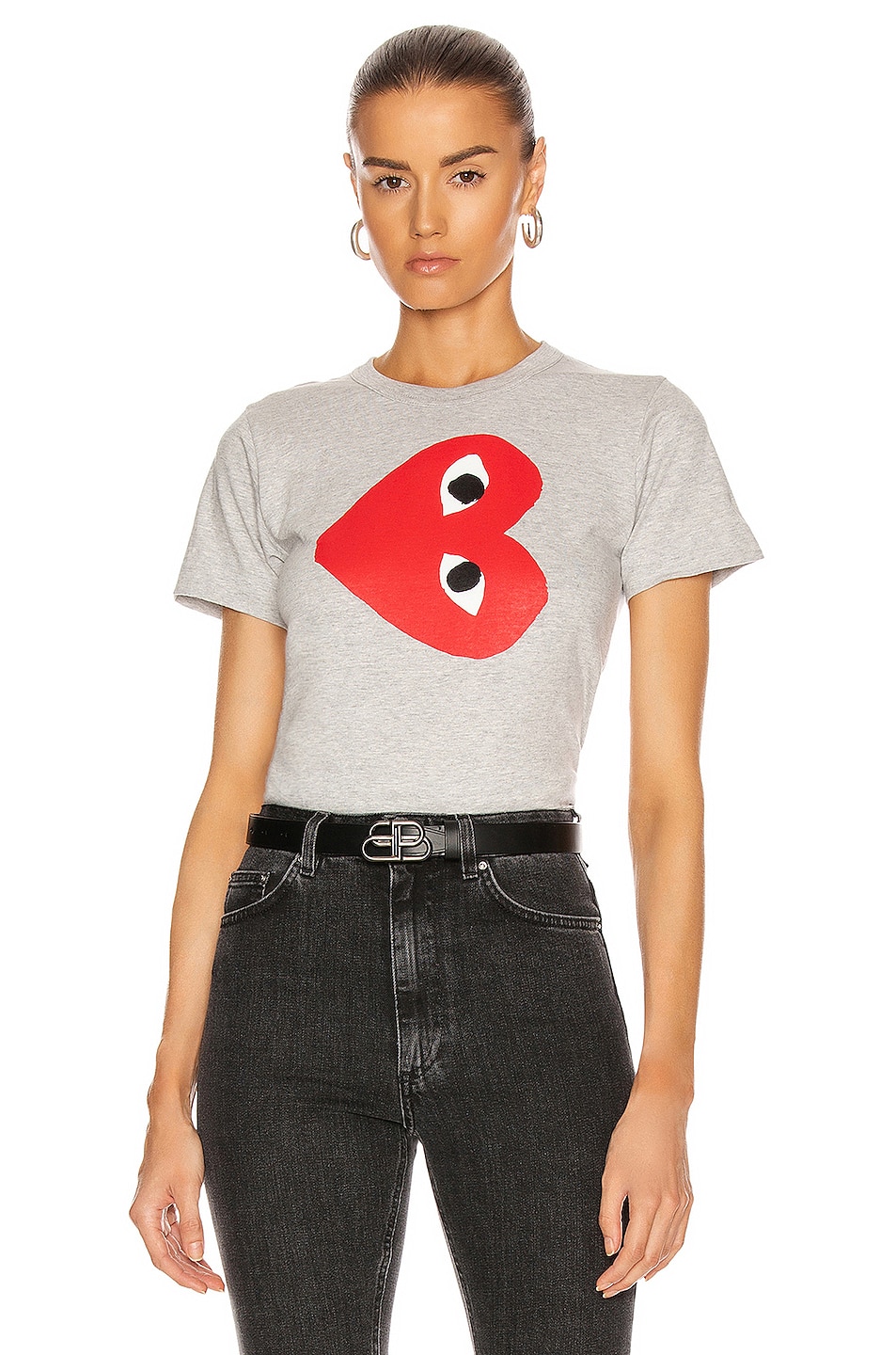 - CDG Play家的小桃心,从编编初中开始各路潮人就开始带货,这么多年过去了已经成为人人手中必备的一件基础款装备。不管是小桃心的短袖还是板鞋,编编都建议入一件!白T和黑T都是夏季百搭的单品,现在码子比较全,F家的物流也快,趁着大批量的上新,所以赶紧冲鸭~建议凑单2件T恤就能享受包税包邮哦~