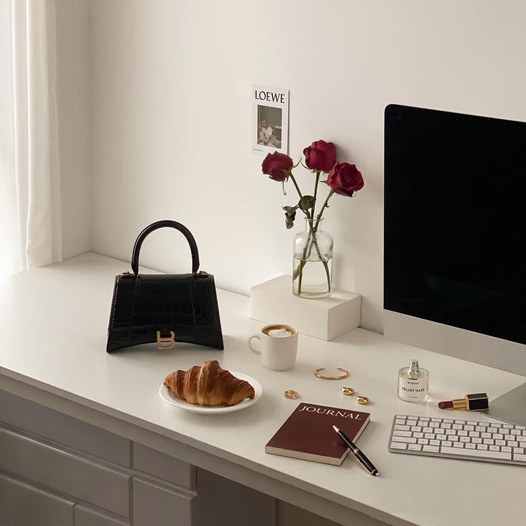 - Balenciaga 标志性的 “Hourglass” 沙漏型设计不仅被运用在气场十足的精裁装上,还时常出现在配饰作品之中。这款Hourglass 手提包以光面皮革在意大利制成,正面翻盖上点缀着 “B” 字 Logo,辨识度十足。不妨用手柄提拎,或将肩带调节至理想长度后肩背。