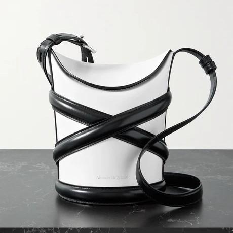 - Alexander McQueen 创意总监 Sarah Burton 用“摩登且有力”来形容这款 “The Curve” 水桶包,包身上的道道弧线灵感源自品牌的经典束带元素。这一小号双色版本采用柔滑皮革精心制作于意大利,包内容量充裕,磁扣式双翻盖在方便开合的同时保持了外观的简约紧凑