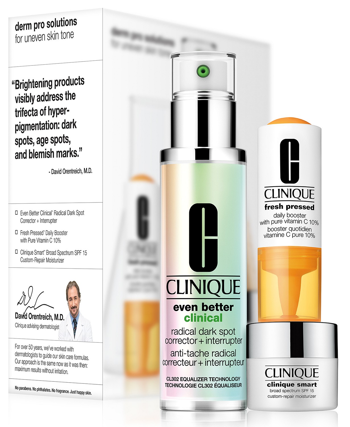 - 这款套装包含镭射精华1.7oz、维C精华0.25oz和保湿霜0.25oz,升级版淡斑精华在用料上下足了功夫。倩碧的灵魂淡斑修复精华其效果可以媲美皮肤学专业淡斑,升级版用量上增加了一倍依旧对任何肤质都受用,效果相信也会更加的明显。
