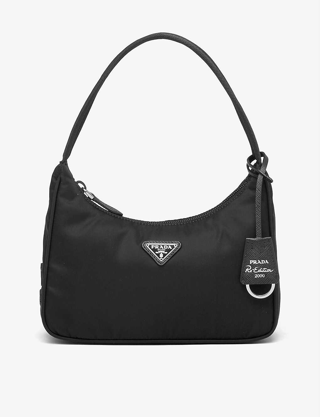 - Prada 的这款尼龙单肩包长6cm,高17cm,宽22cm,采用了可再生的尼龙材料,非常环保。包身简洁大方,正面带有一个三角形徽标牌,肩带上挂有Re-Edition钥匙扣,同时包内空间足够,兼顾了美观与实用。