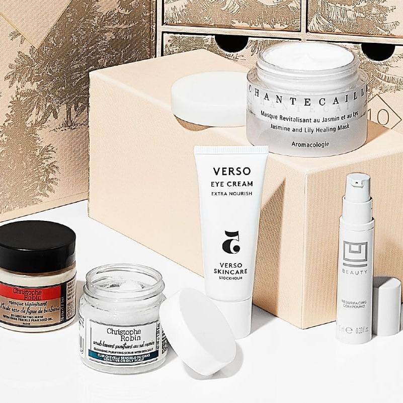 - Skinstore 的超值礼盒来啦,真的很推荐大家购入哦!!一共有12件单品,Skinstore 里面卖的超好的热门单品都有包括哦,有Chantecaille, Christophe Robin, VERSO 等品牌!看图中的香缇卡花妍面膜和verso 5号眼霜就值了!