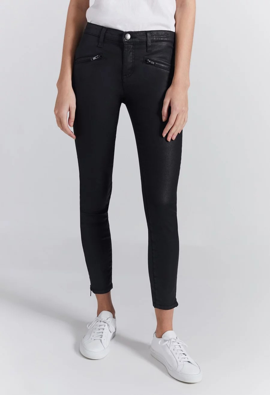 - 这款修身紧身牛仔裤搭配完美涂层牛仔服,更加适合夜间外出。剪裁修长,腿部有点伸展效果,并且增加了脚踝拉链和前口袋,打造出一种别致的造型,显腿长腿细~这条小脚裤有股与众不同的不羁的叛逆感,会是你衣橱里的搭配利器!