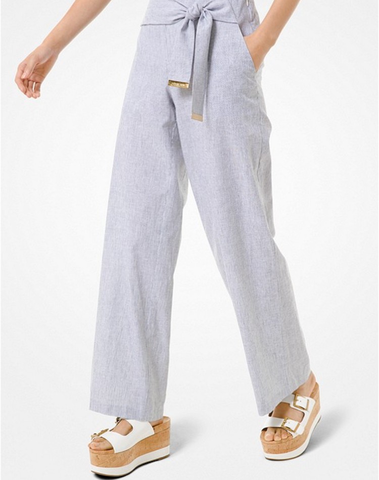 - MK 的这款高腰休闲裤是由透气的亚麻和棉混纺而成的,即使在炎热难耐的酷暑也不会感到闷热,非常透气轻盈~裤子以对比鲜明的白色条纹为特色,腰部打上慵懒的领带,衬托出宽阔的腿型,气场瞬间拔高~现在入手也只要200出头的价格,价格感人!低平民的价格依旧带给你高质量的享受~