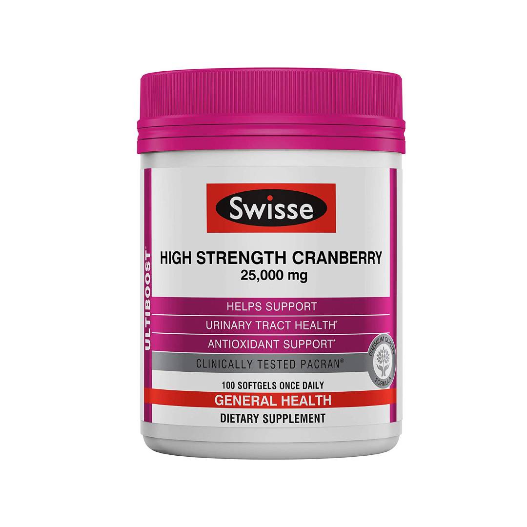 - Swisse 蔓越莓胶囊选材引进北美湿地产量极少的纯蔓越莓果实,先进生产设备提取高浓缩活性成分,保留果实的营养,蔓越莓浓度是普通蔓越莓的3.8倍,可以有效抑制幽门螺旋杆菌,抵抗细菌性胃溃疡,并且还有丰富VC和花青素,具有很强的抗氧化作用,可降低低密度胆固醇及三酸甘油酯,并能有效改善和抑制复发尿路感染,膀胱炎,尿道炎。每日一粒,能改善女性可能头痛的问题,远离炎症和姨妈痛。