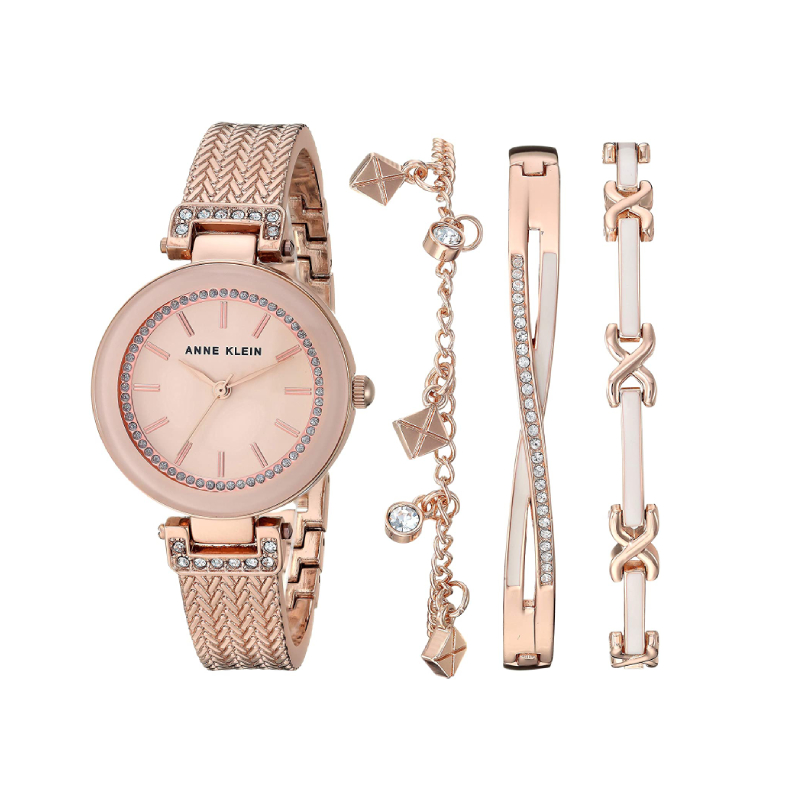 - ANNE KLEIN 安妮·克莱因 AK/3394女士手表手镯套装 ,采用施华洛世奇锆石装饰,手表与手镯的完美结合,优雅精致,现在非常流行首饰叠加的戴法,这一套刚好免去你思考的时间,已经帮你们搭配好了。
