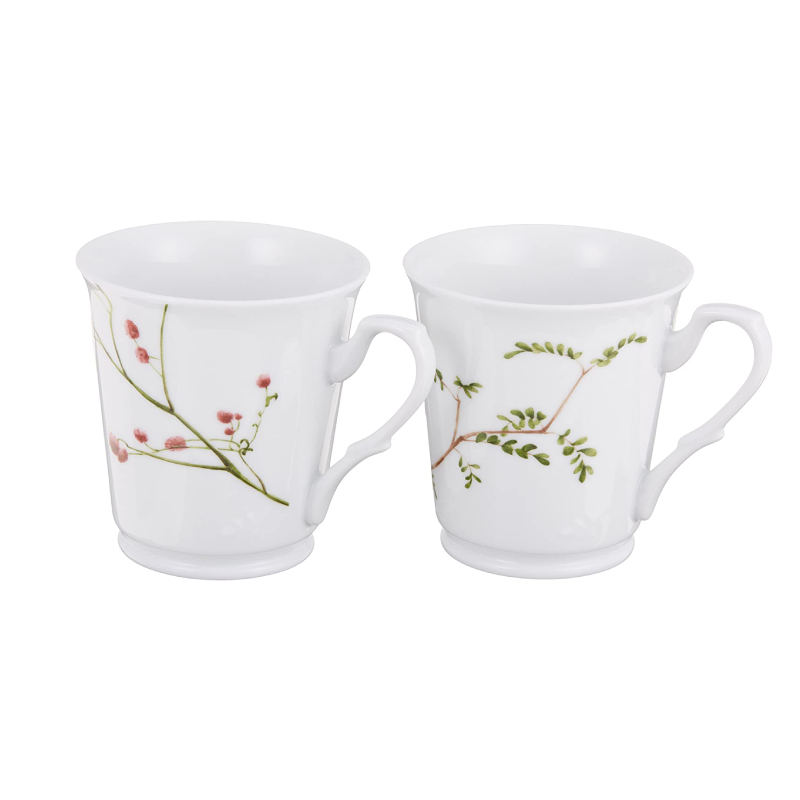 - Narumi 鸣海其产品兼具西式餐具的华丽典雅又秉承日式餐具的细腻精致,里花历系列以日本四季的花草为灵感,分别以春兰、山椒、乌瓜、吾亦红和猫柳为主题,错落有致地在洁白的器皿上呈现大自然和谐温暖的氛围。这款樱花年华马克杯共有2只装,自然又很清新。