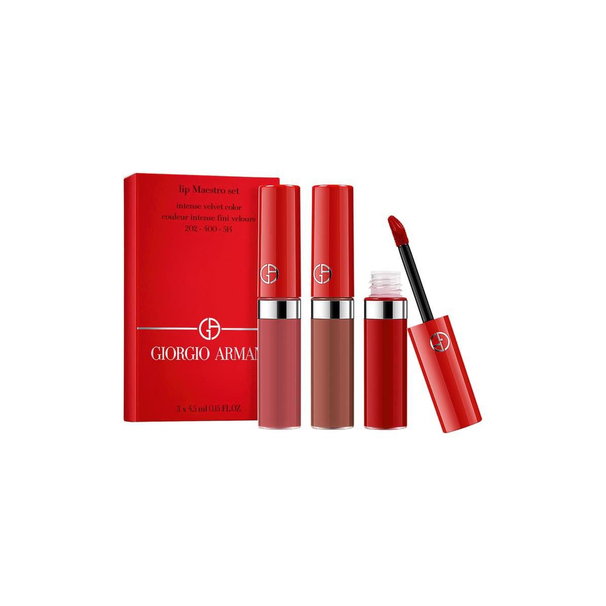 - Armani 阿玛尼红管唇釉三件套包含:202、400、514。完全无鸡肋的套装,相当于三分之二的正装的容量,真的无敌划算!514限量豆沙色,带着光泽的丝绒质地,格外温柔,黄皮星人也能 hold 住!