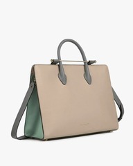 - Strathberry 手提包大到足以携带您的笔记本电脑和午餐盒,是一款经典款式,非常适合日常时尚。这种低调、精巧的设计是您未来几年都会珍藏的衣橱必备品。结构鲜明的廓形和标志性的 Strathberry 条扣设计,优雅地折叠在顶部提手上,确保包包牢固闭合。通过顶部提手将它戴在手中,或系上肩带并斜挎携带,解放双手。此配色为 2022 秋冬独家发售。