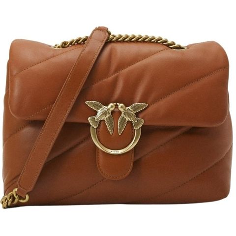 PINKO 女士棕色飞燕金属logo经典羊皮单肩包斜挎包